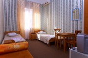 Размещение: пансионат рассчитан на 350 человек. Корпуса №№ 1, 2: 2-местные стандартные номера без балкона, 1 этаж (макс. 2+1 чел., 12,2-14 кв. м, 1-спальные кровати, душ, туалет, телевизор, холодильник, кондиционер, линолеум/ковролин), 2-местные стандартные номера без балкона, 2 этаж (макс. 2+1 чел., 9,6-10,2 кв.м, 1-спальные кровати, душ, туалет, телевизор, холодильник, кондиционер, линолеум/ковролин), 2-местные улучшенные номера (макс. 2+1 чел., 15,9-20,1 кв. м, 1-спальные кровати, душ, туалет, телевизор, холодильник, кондиционер, фен, ковролин), 3-местные стандартные номера с балконом (макс. 3 чел., 14,9-19 кв. м, 1-спальные кровати, душ, туалет, телевизор, холодильник, кондиционер, линолеум/ковролин, балкон), 3-местные стандартные номера без балкона (макс. 3 чел., 12,6-13,9 кв. м, 1-спальные кровати, душ, туалет, телевизор, холодильник, кондиционер, линолеум/ковролин). Корпус № 3: 2-местные стандартные номера (макс. 2 чел., 11,4-13,6 кв. м, 1-спальные кровати, душ, туалет, телевизор, холодильник, кондиционер, линолеум/ковролин, общий балкон). Водоснабжение: холодная и горячая вода постоянно. К услугам отдыхающих: столовая, оснащенная сплит-системой, кафе-бар, камера хранения, автостоянка, площадка для отдыха у фонтана. Спорт: открытый бассейн с раздельными секциями для детей и взрослых, волейбольная площадка и площадка для мини-футбола, прокат спортинвентаря. Лечение будет осуществляться по нескольким направлениям: оздоровление детей, лечение органов дыхания, заболеваний опорно-двигательного аппарата и позвоночника с применением широкого спектра физио-терапевтических процедур (свето и тепло лечение, электрофорез, галокамера и т.п.) с использованием различных видов массажа, фитотерапии, механотерапии и ЛФК. Детям: детская комната, площадка, бассейн. Пляж: городской, песчаный, оборудованный, в 200 м от пансионата, прокат пляжного инвентаря. Песчаный, собственный, в 850 метрах. Документы: паспорт, путевка, медицинский страховой полис, для детей – справка об эпидокружении, свидетельство о рождении.